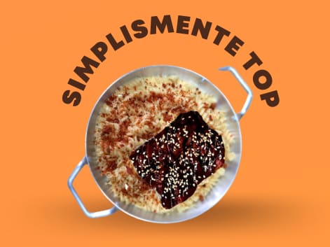 Macarrão com molho de queijo, farofa de bacon + 2x ripas de costelinha defumada na lenha de maçã com bbq
