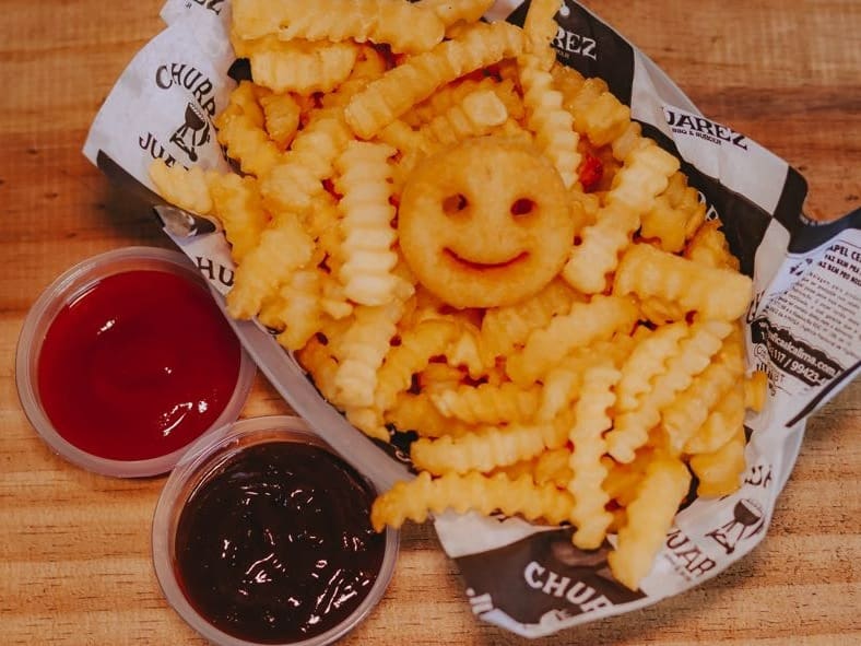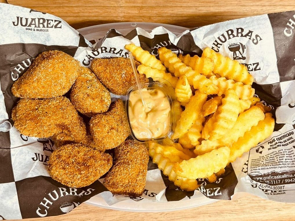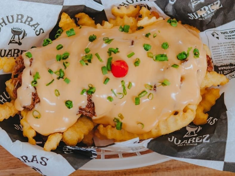 Batata Crinkle 300g, copa lombo defumada desfiada no bbq + molho de queijo e cebolinha