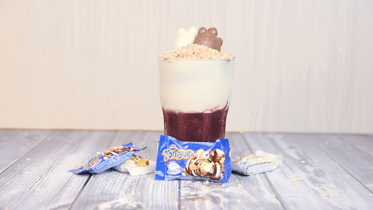 Chocolate Sonho de Valsa, leite em pó, ganache de chocolate preto.