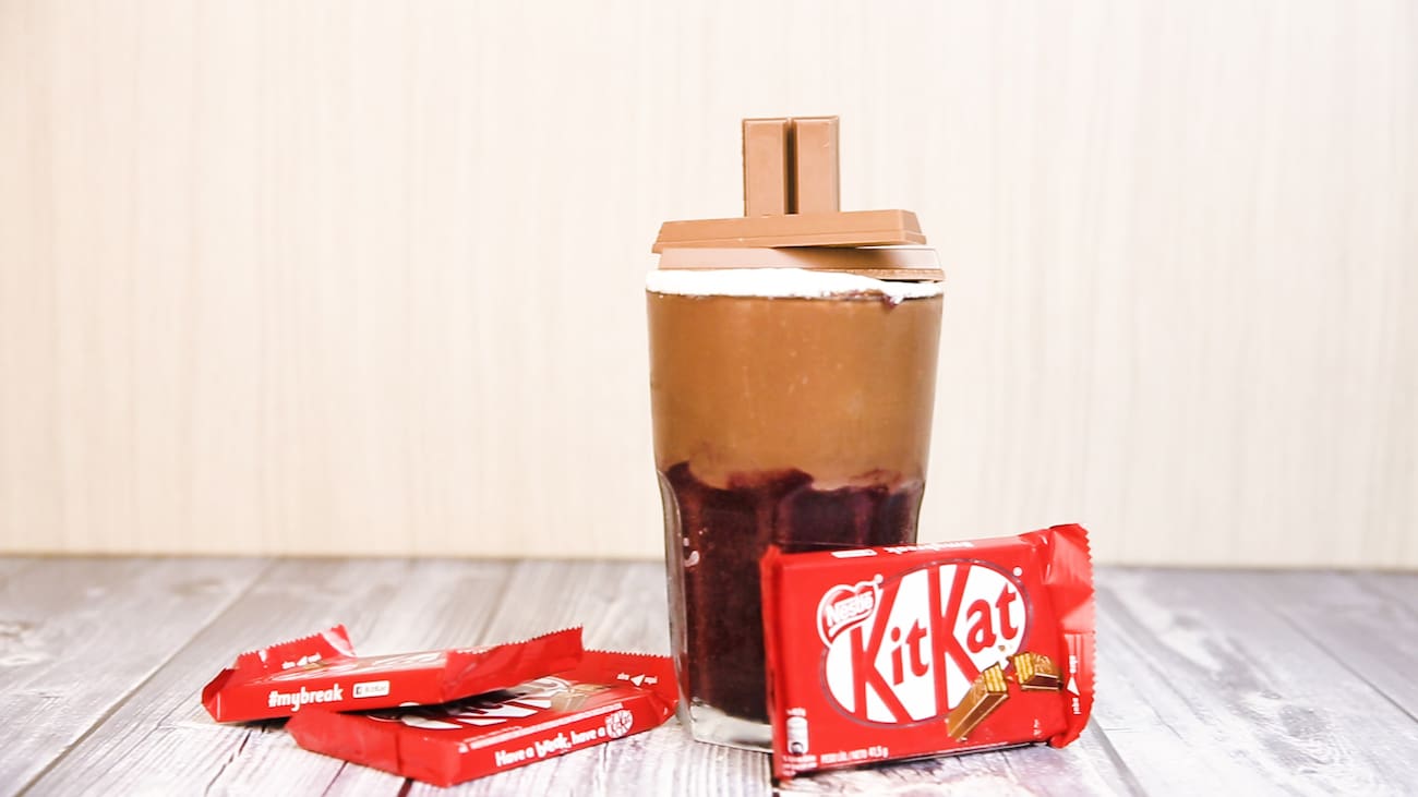 Chocolate Kit Kat, ganache de chocolate preto e leite em pó.