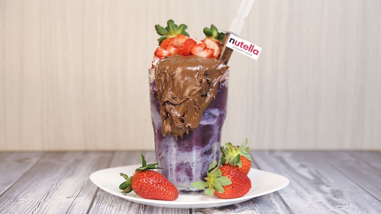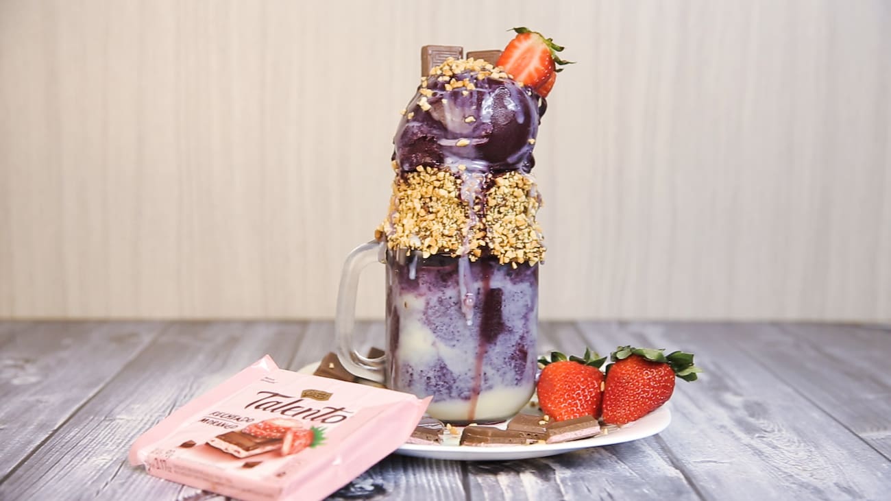 Chocolate talento, leite condensado, amendoim, Nutella e morango.