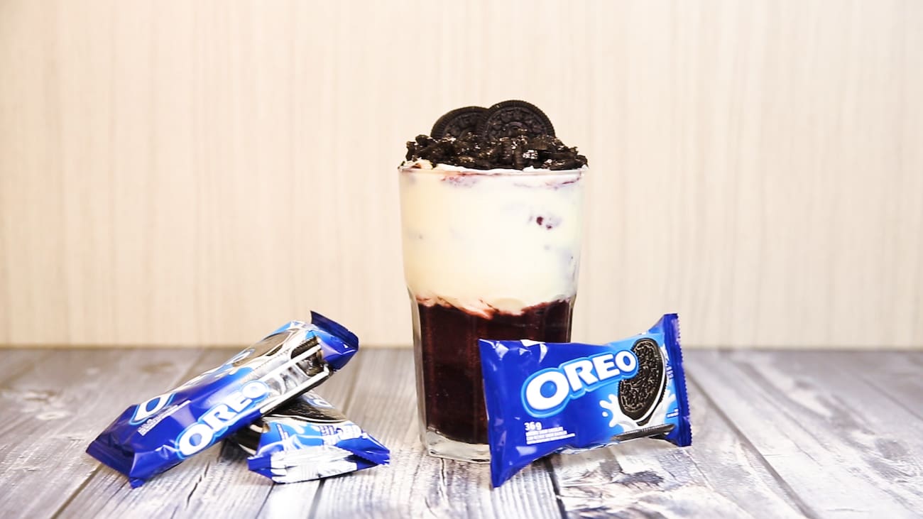Bolacha oreo, leite condensado, ovomaltine, Nutella.
