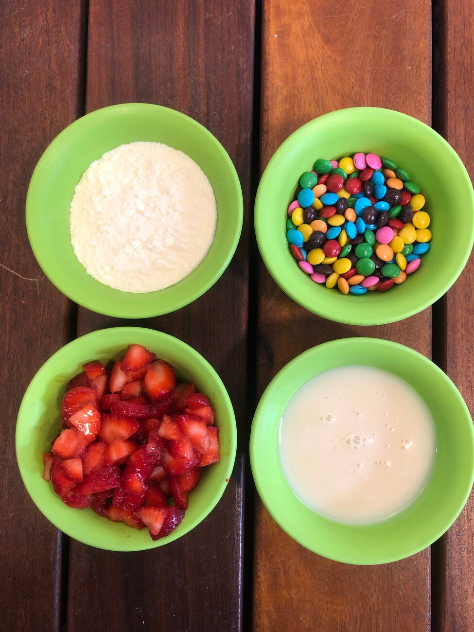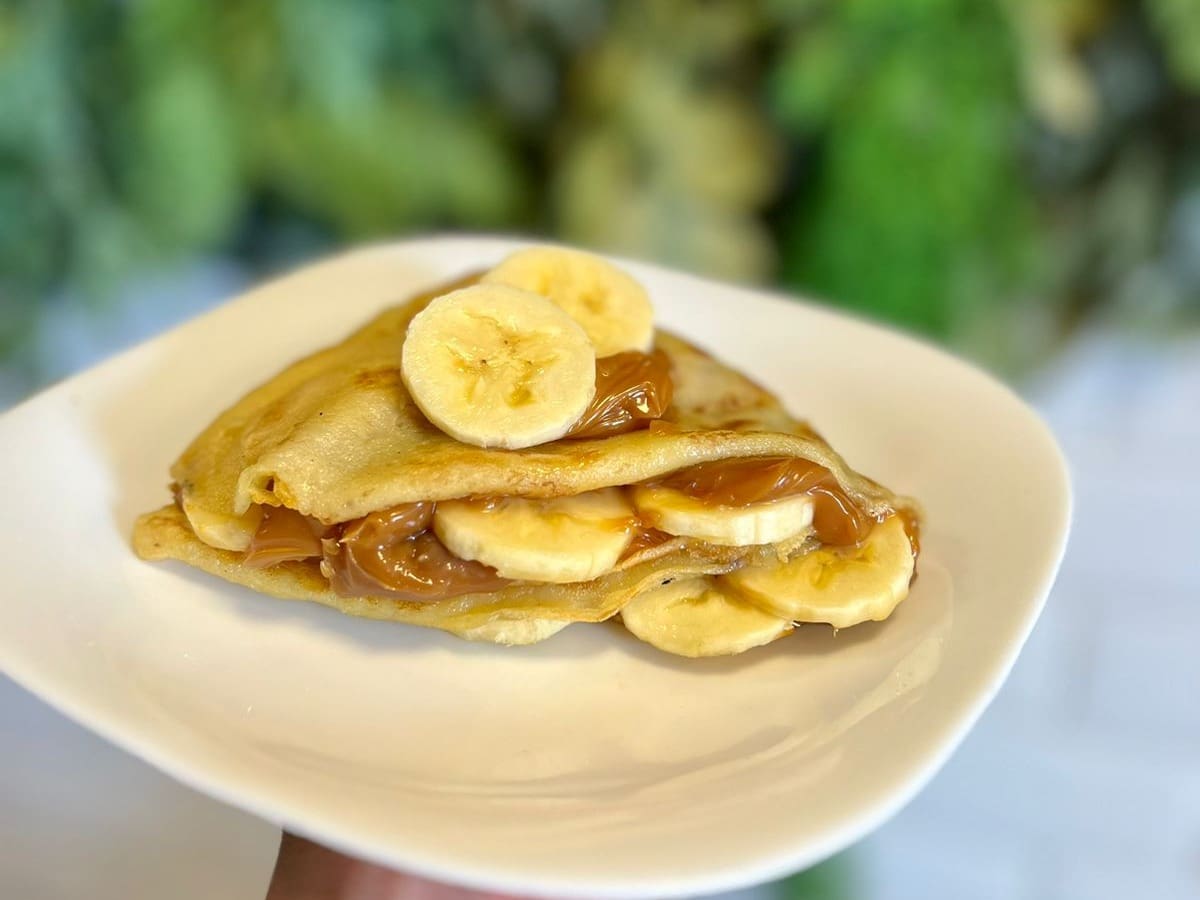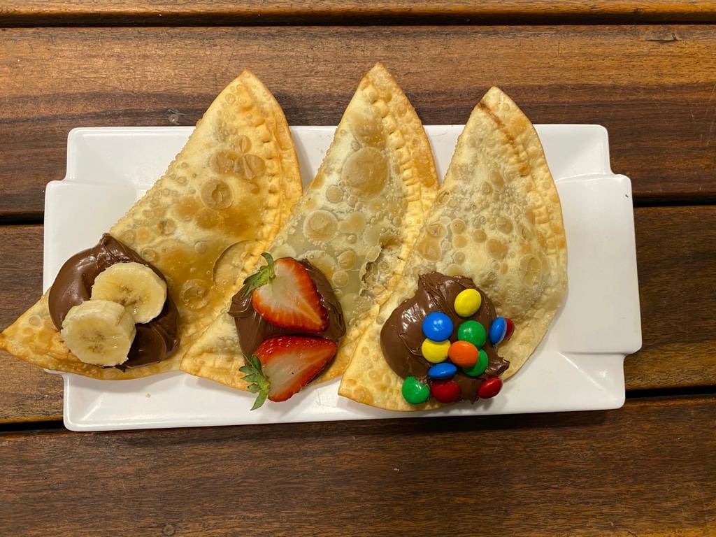 Leite condensado, leite em pó, fruta da estação e Nutella.