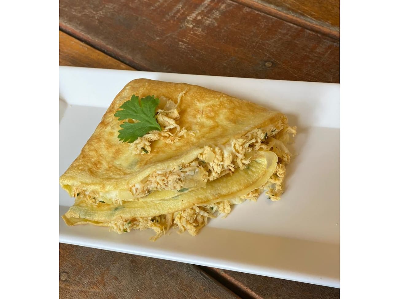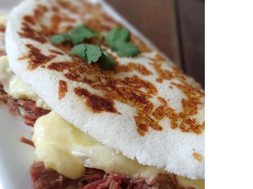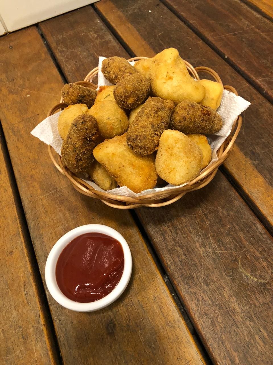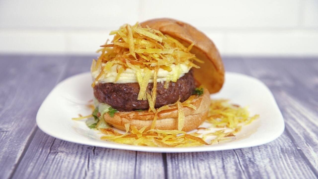 Hambúrguer de fraldinha, mandioquinha palha, Catupiry Original e molho da casa.