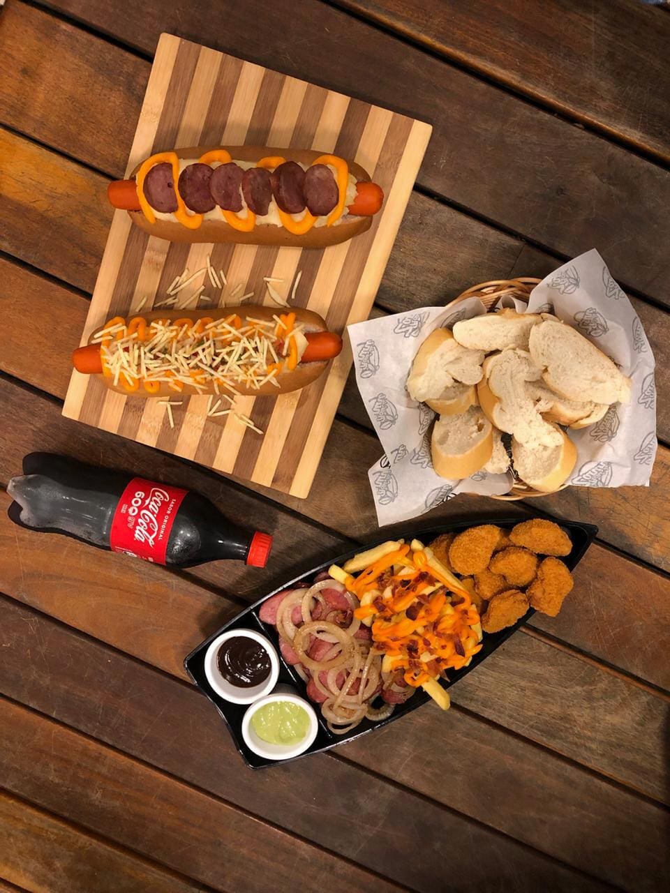 2 opções de hot dog batata com cheddar e bacon calabresa nuggets com dois molhos refrigerante 600ml