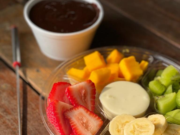 Escolha até 6 acompanhamentos + 500 ml de chocolate ao leite. importante: valores incluem até 6 acompanhamentos. serve 4 pessoas.