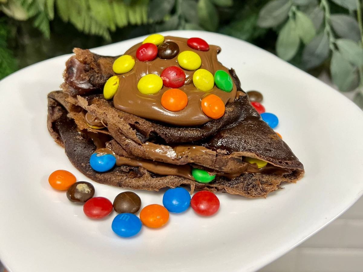 Tapioca recheada com Nutella e Trento Massimo Brownie com chocolate 38% cacau.