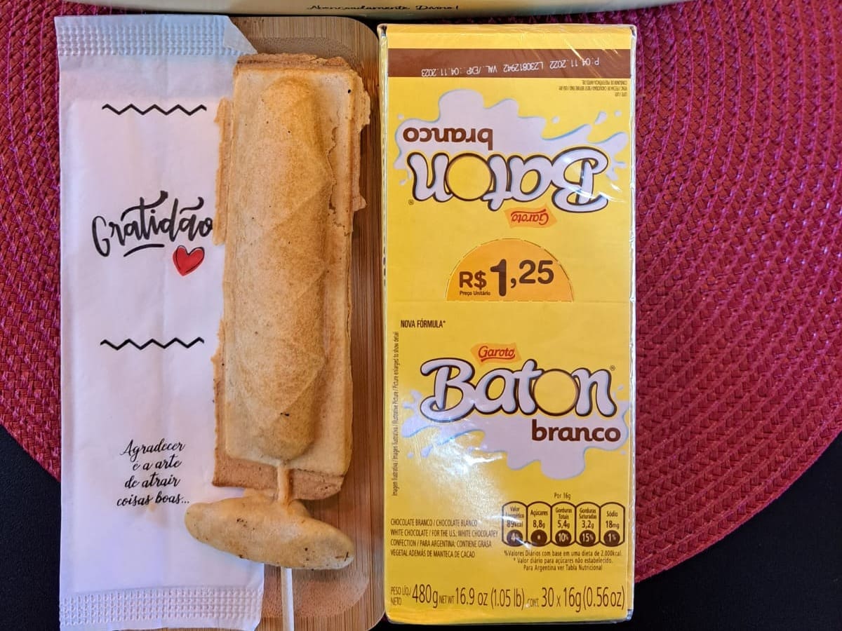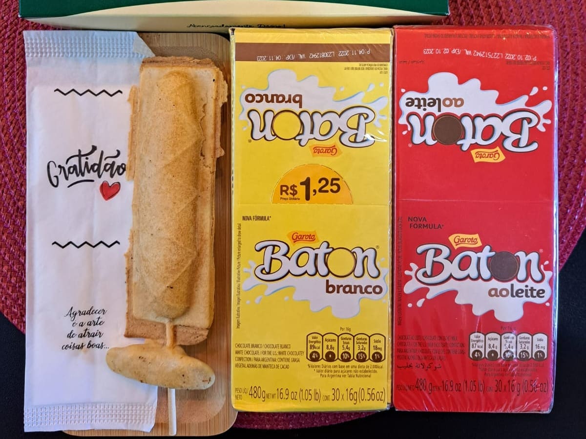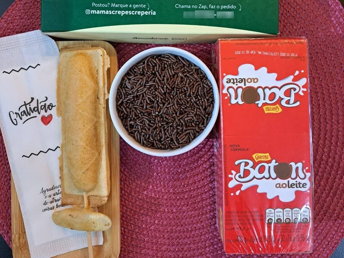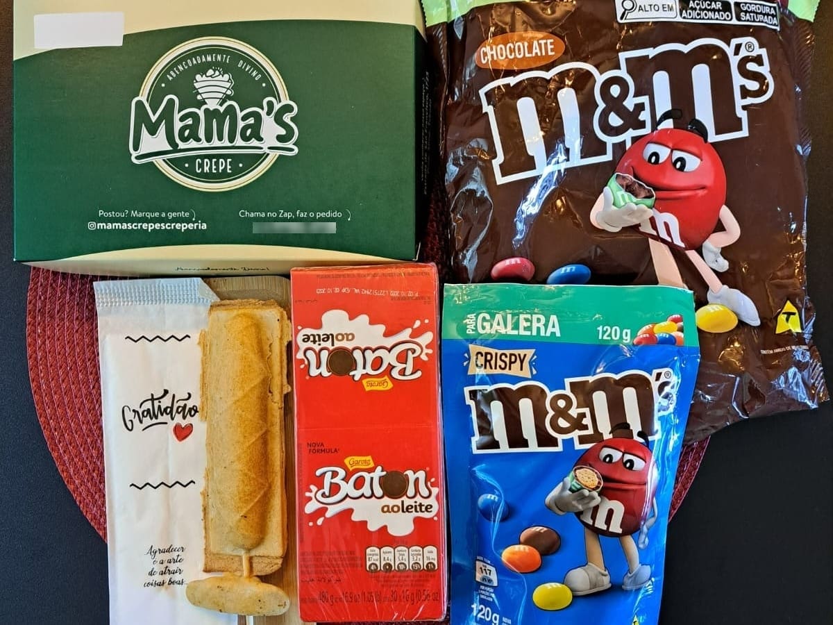 Doces: Banana, Beijinho, Brigadeiro, Chocolate ao Leite, Chocolate Branco, Chocolate Duo, M&M´S, Churros, Doce de Leite, Nutella, Prestigio, Romeu e Julieta, Sensação I e Ii.