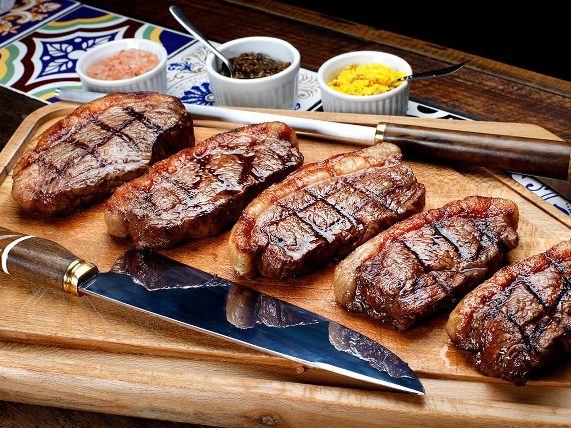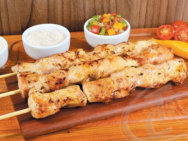 Grelhada na brasa. Acompanha vinagrete, farofa da casa e pão de alho. Imagem ilustrativa. 600g in natura, serve até 3 pessoas.