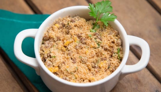 Tradicional. Acompanha fatias de pão ao azeite e ervas com vinagrete.