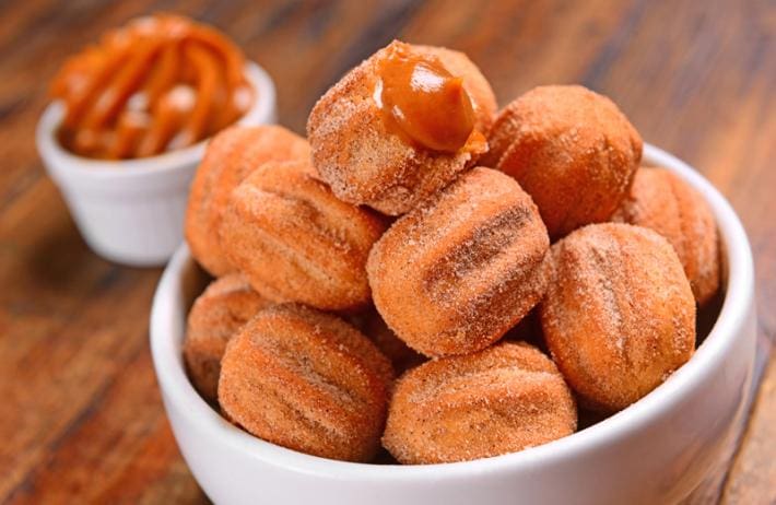 8 unidades de mini churros recheado de doce de leite. Acompanha doce de leite a parte.