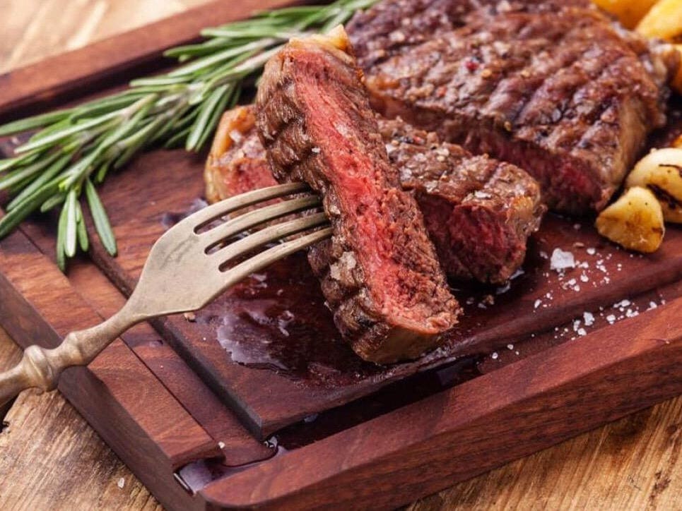 Corte nobre da costela bovina. * Steak de 500 g aproximadamente. Peso in natura. Acompanha: Arroz, farofa e maionese Imagem ilustrativa.