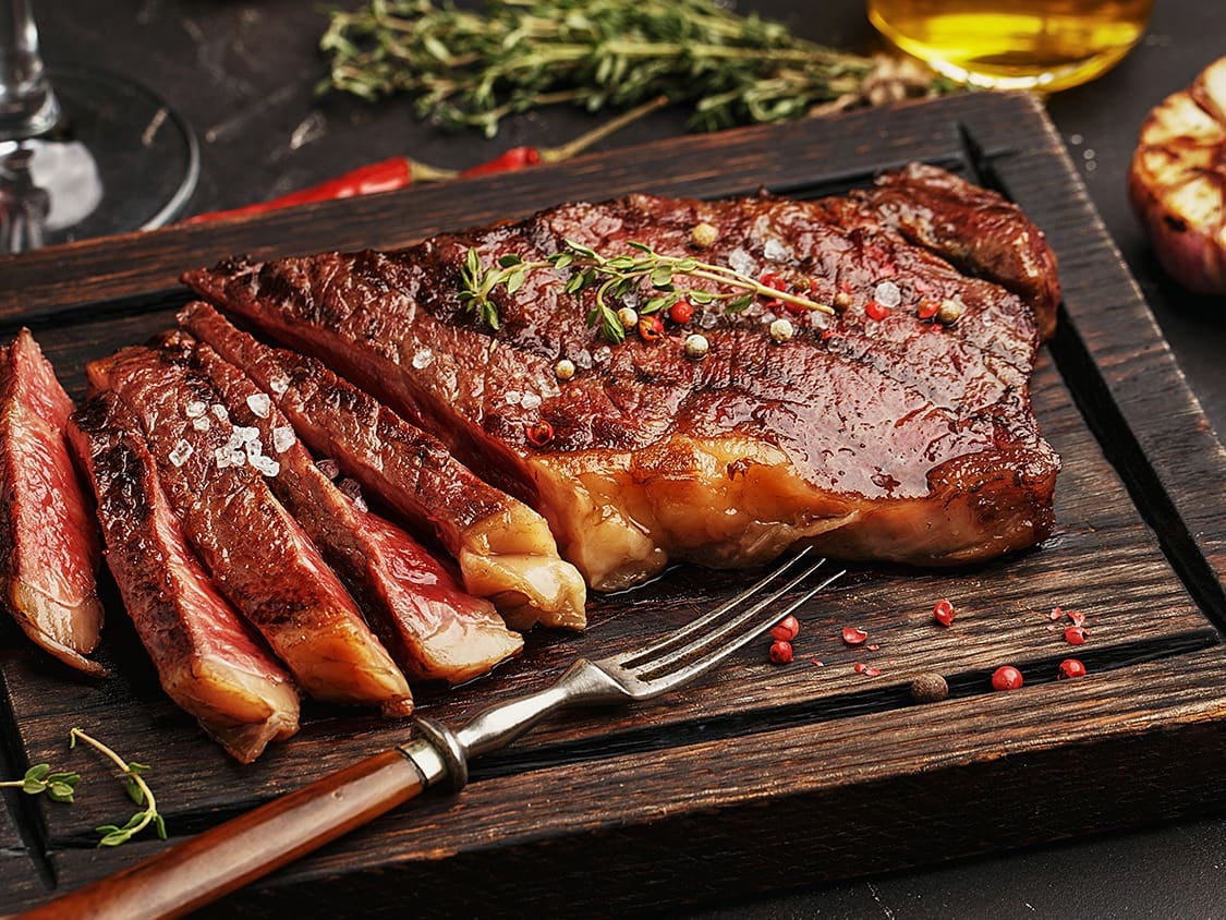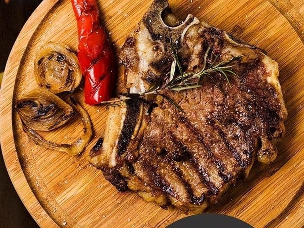 Corte que envolve parte do contra-filé e filé-mignon característico pelo osso em formato de t. steak de 500 g em média. Peso in natura Acompanha: Arroz, farofa e maionese Imagem ilustrativa.