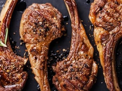 Corte nobre da costela de angus. Steak de 300g aprox. Peso In natura. Acompanha: Arroz, vinagrete, farofa e maionese. Imagem ilustrativa.