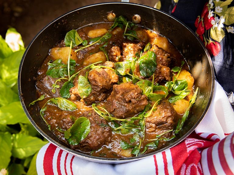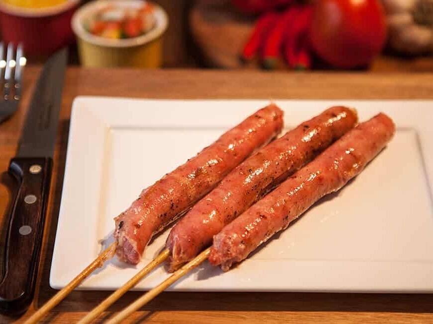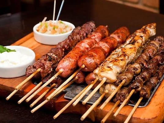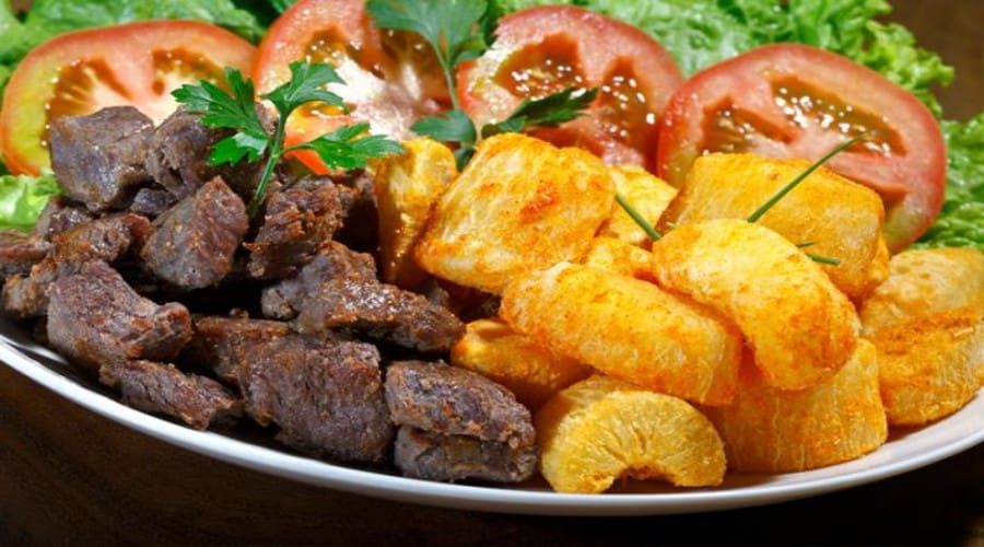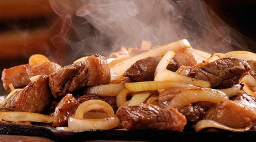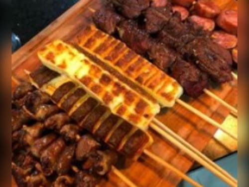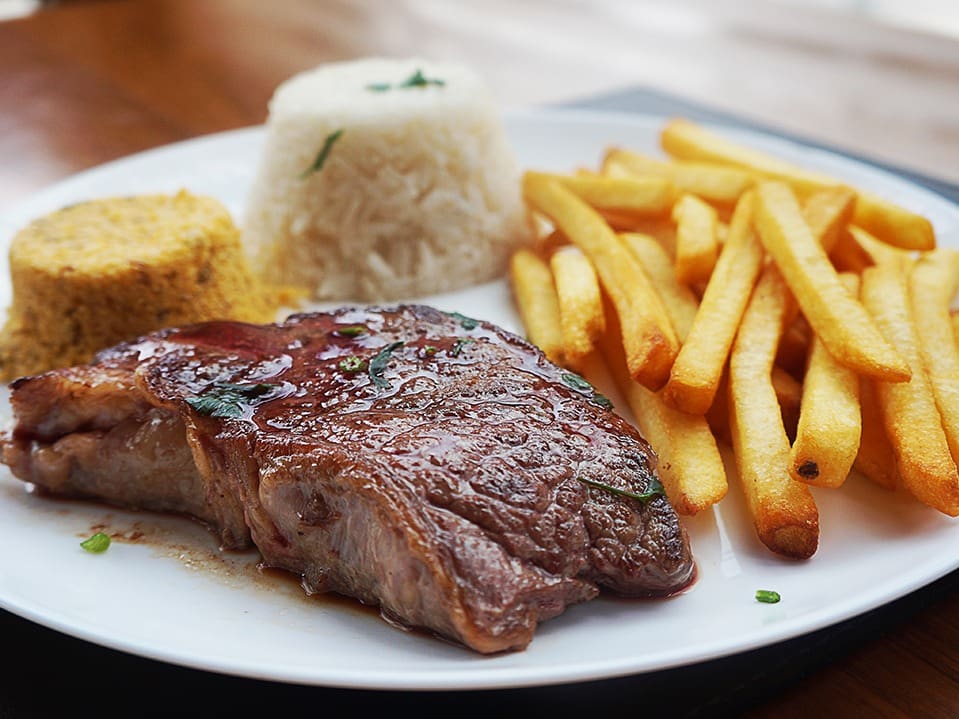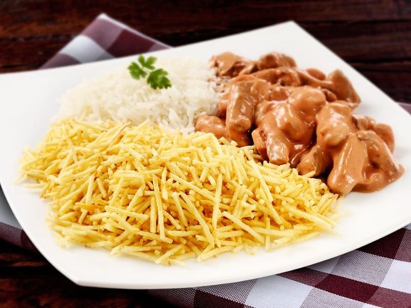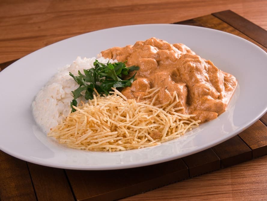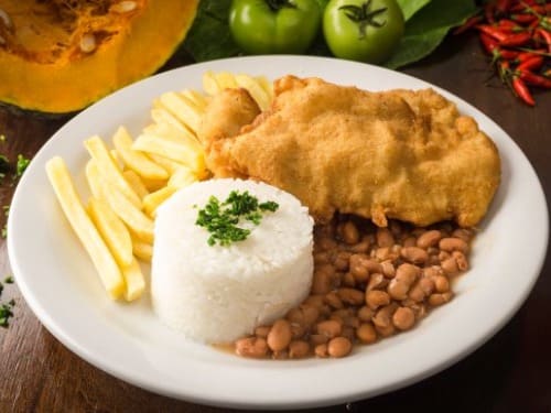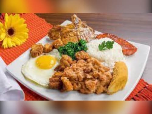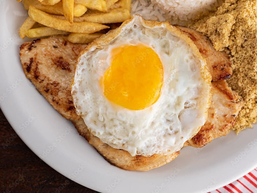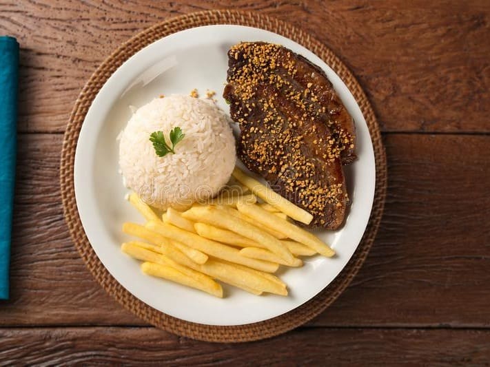 Acompanha feijão preto, couve, arroz, bisteca, carne seca, paio, torresmo, farofa, laranja, pimenta, linguiça, costela, pé, rabo e orelha