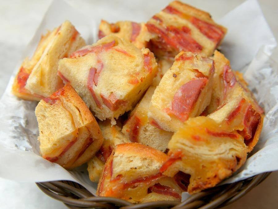 Porção de pão de calabresa artesanal e mozarela.